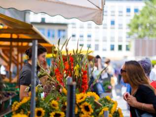 From April to November, the St.Gallen farmers' market attracts numerous visitors from the city and region every Friday morning from 7.00 am to 1.00 pm around the Vadian Monument. Locals and guests meet here to buy fresh, regional products directly from the producers and enjoy the lively market activity in this charming meeting place.