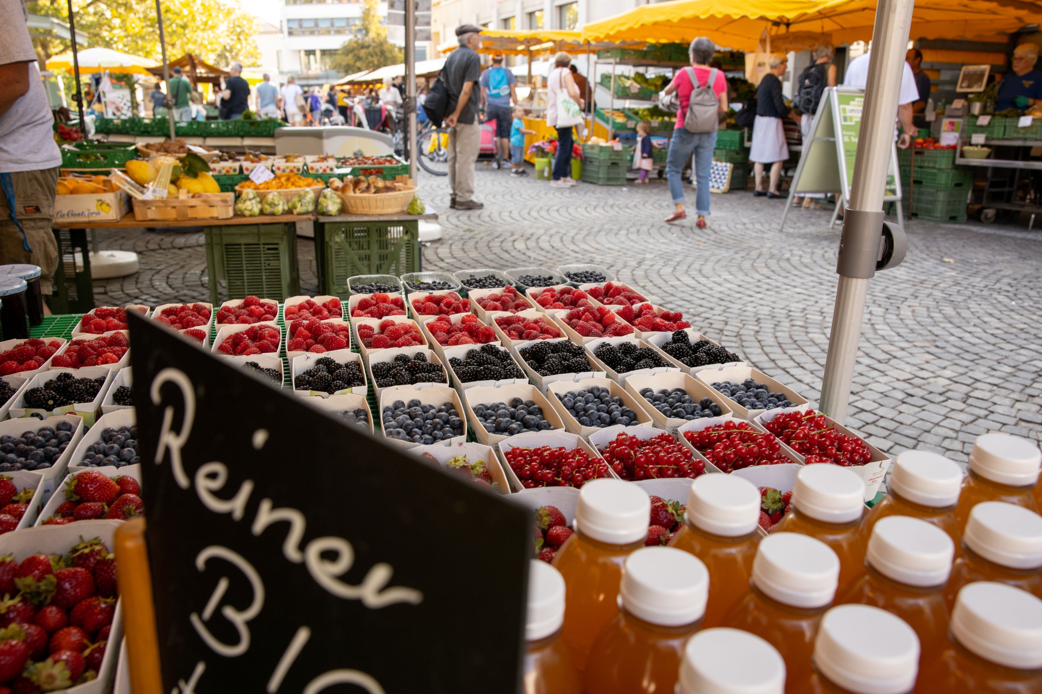 The St. Gallen Farmers' Market invites you to explore and enjoy. Here, you can not only buy high-quality food but also experience the atmosphere of a lively marketplace. Have you already visited the Farmers' Market and been enchanted by its colorful variety and cheerful atmosphere?