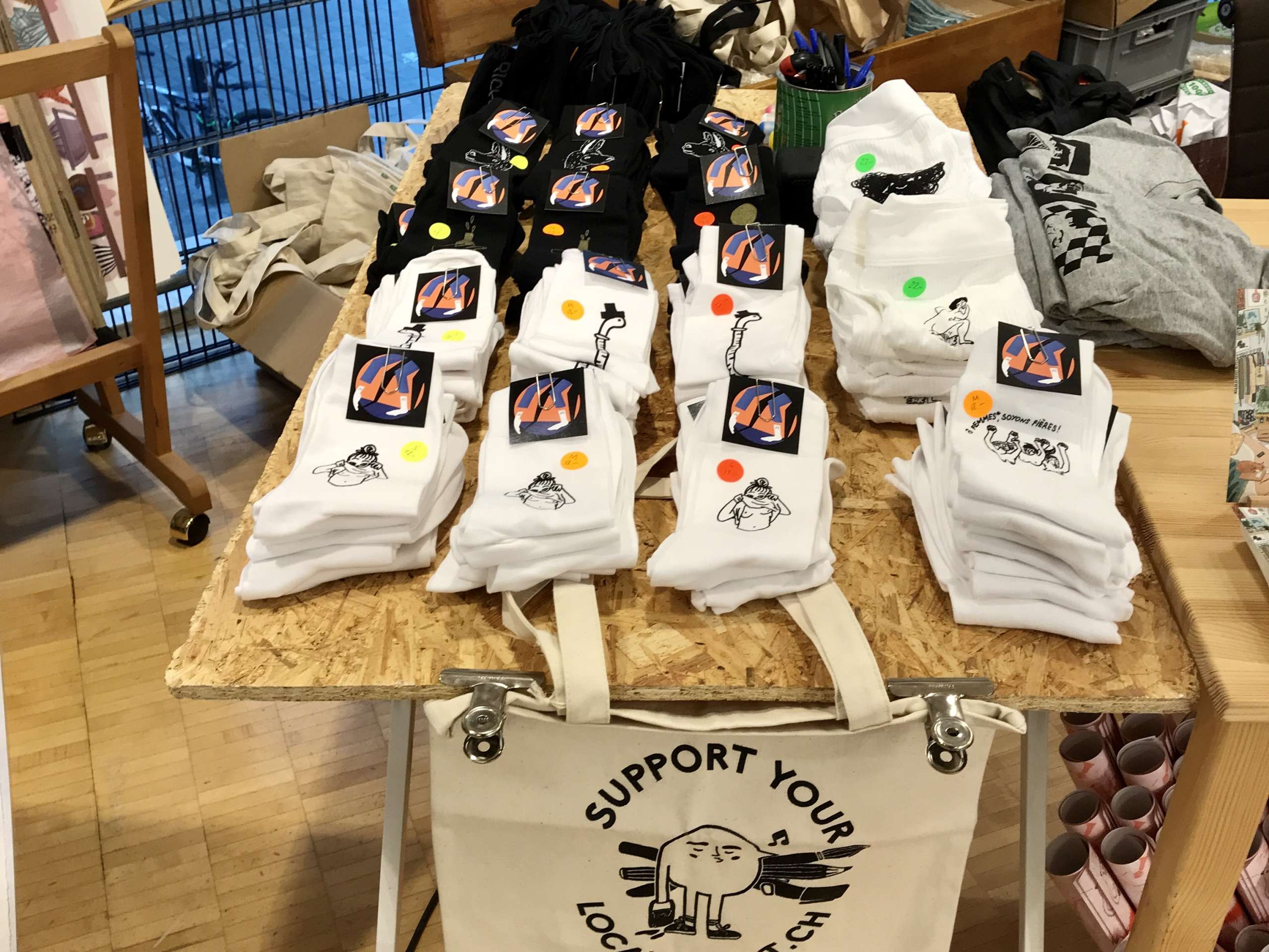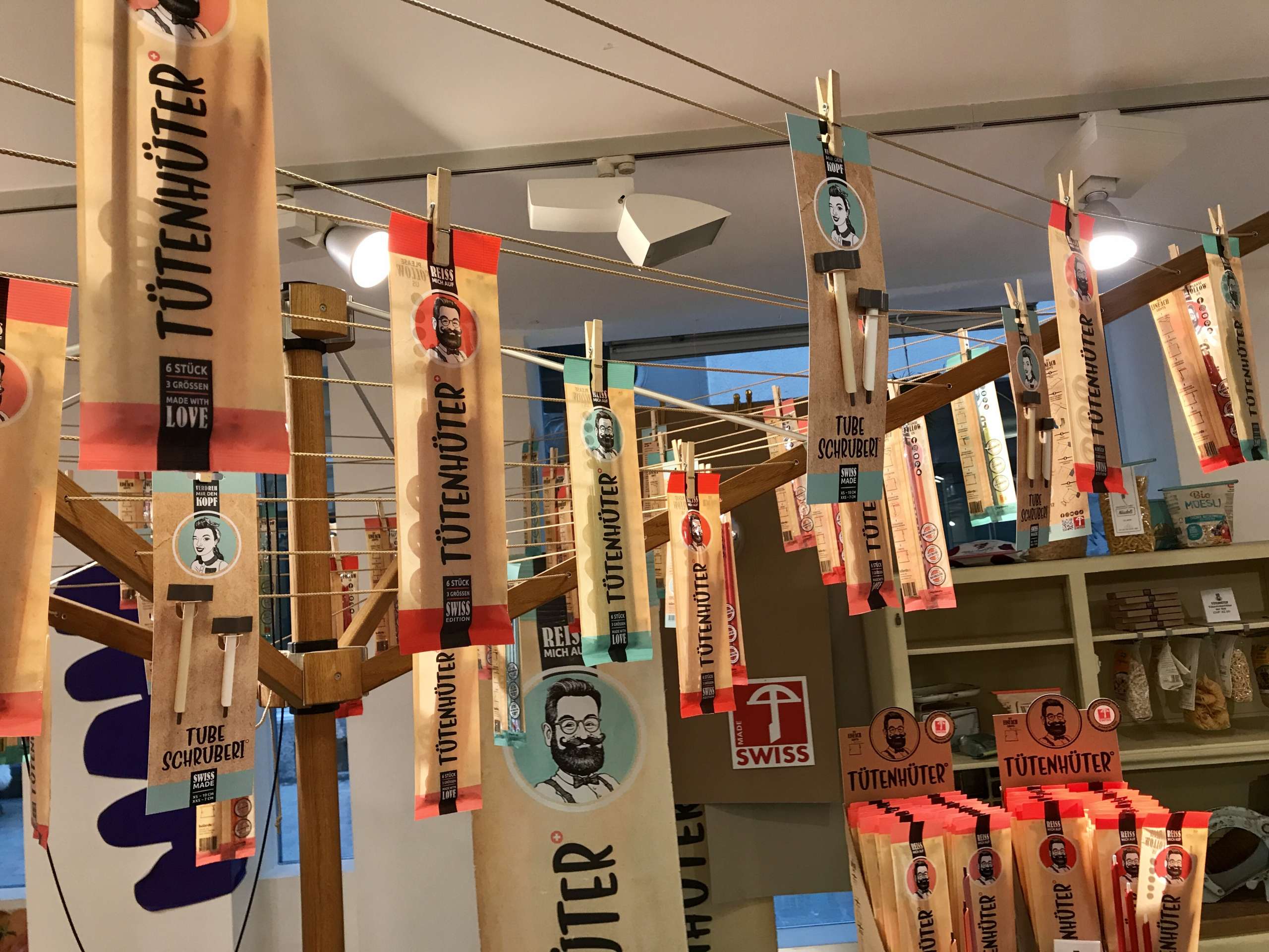 The 1st floor is filled with local creativity. Here, artists from the network "supportyourlocalartist.ch" exhibit their works, which can also be purchased. They have their own cash register system on their floor, where only their products can be paid for.