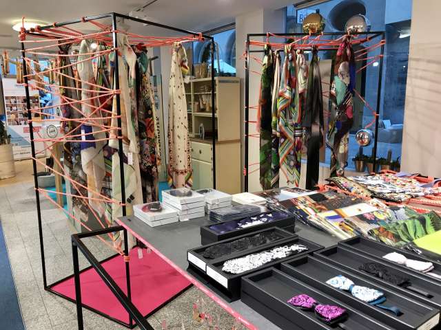 In the 1st basement, other members of the "Made in St Gallen Initiative" present their products and services, such as clothing or handicrafts.
