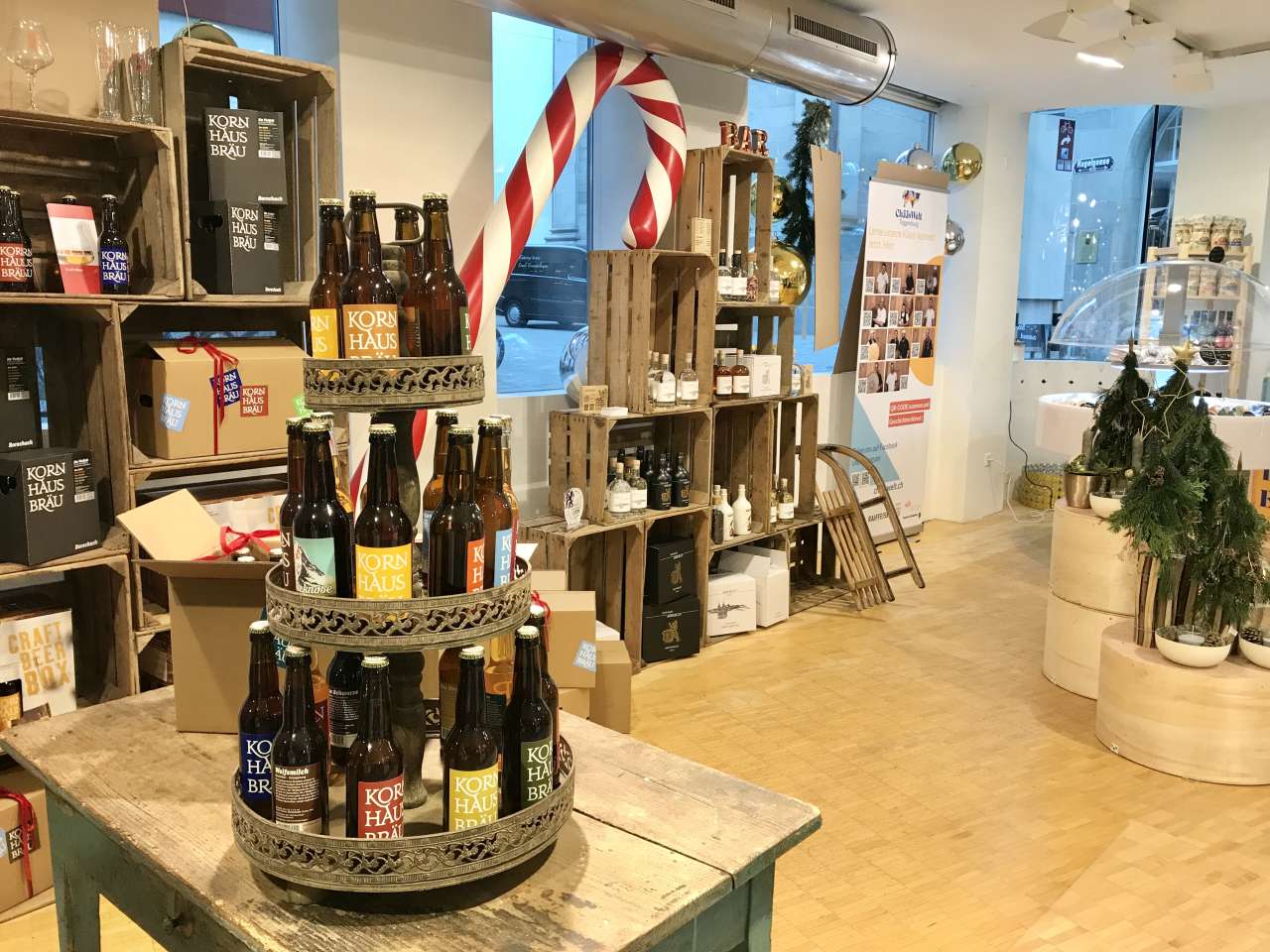 On the first floor of St.Galler Haus , in addition to the checkout, which is designed as a self-checkout, you will find various makers of the "Made in St Gallen Initiative" Attention: Payments can only be made with debit and credit cards as well as by Twint.