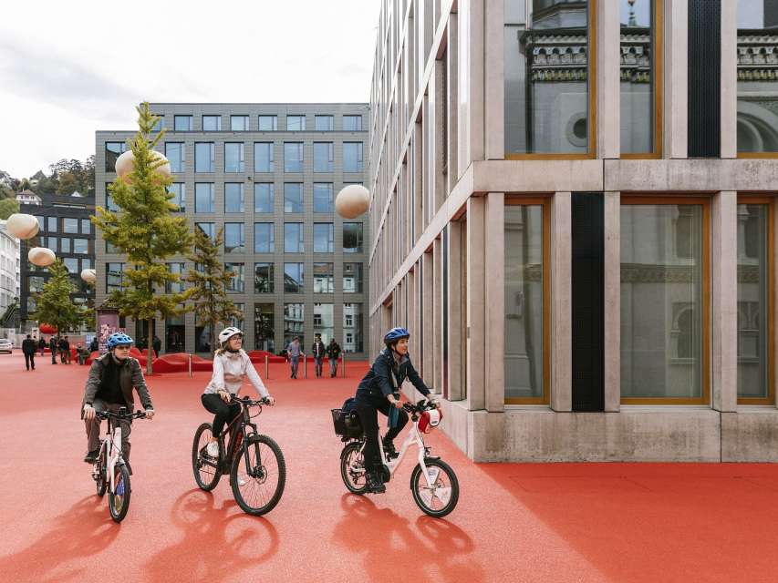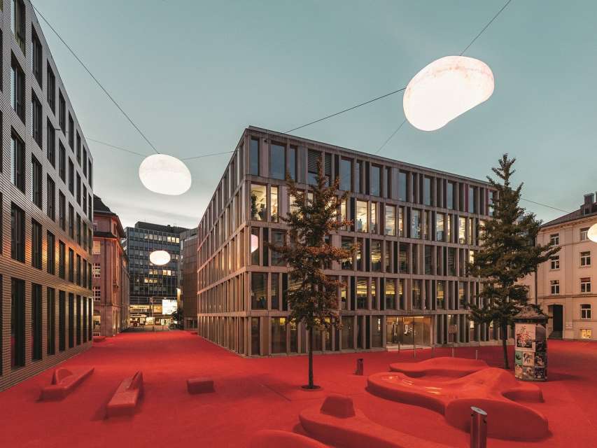 The last stop on the St.Gallen Art Tour leads to a striking red square: the City Lounge by multimedia artist Pipilotti Rist and architect Carlos Martinez, a large red living room in the middle of the city. Opened in 2005, the square is conceived as a meeting place where the city's residents and guests should feel comfortable and linger.