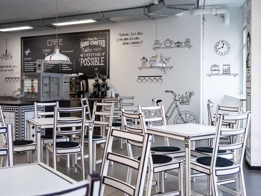 In addition, numerous exciting events, vernissages and readings take place on a regular basis. You can also visit the unique 2D book café on the second floor.