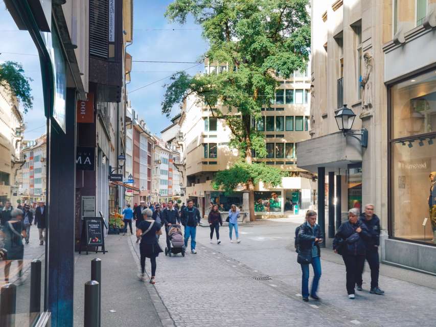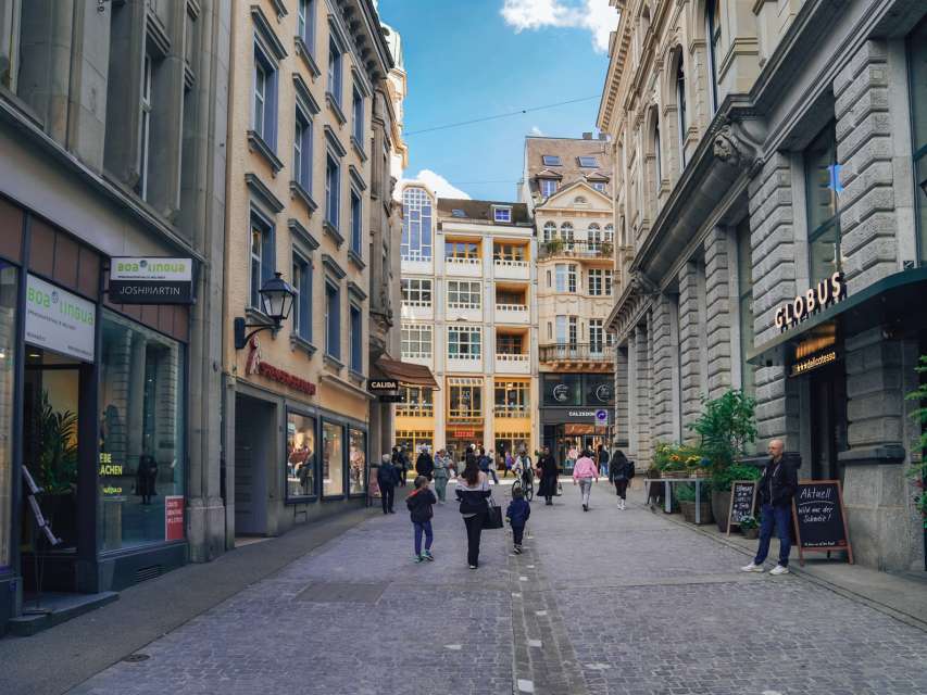 Neugasse is a wonderful place to start the day. The Schwyter family bakery is a popular meeting place for guests sipping their coffee and watching the hustle and bustle. Here you can meet young families who are out and about in the city early, enjoying their croissants before disappearing into the hustle and bustle of the market (every Friday and Saturday during the summer months) at the junction of Neugasse and Marktgasse.