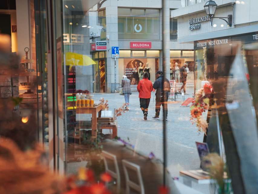 Neugasse is more than just a shopping street. From lovingly run boutiques and small cafés to concept stores where sustainability is a top priority. Anyone looking for natural cosmetics and fragrant oils will find what they are looking for at Farfalla - a lovingly furnished store that invigorates the senses. Football fans will get their money's worth in the FCSG fan store, where the heart beats for the club, whether in victory or defeat. Anyone looking for a timeless memento should stop by the Labhart watch and jewelry store - a true classic since 1886 and the oldest of its kind in St.Gallen. The Globus department store exudes big-city international flair and even has a special side entrance on the Neugasse side that leads directly into the tempting world of culinary specialties.