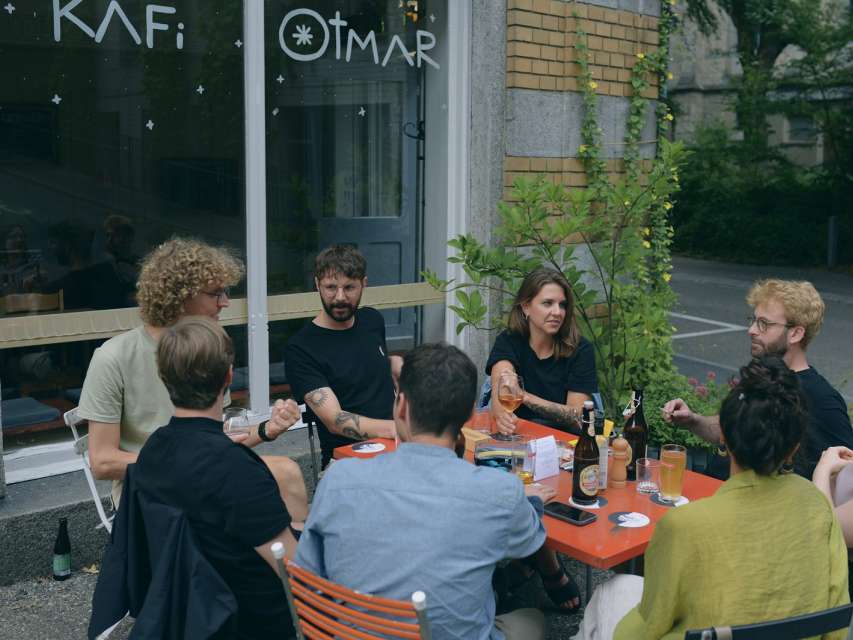 Friday evenings at Kafi Otmar are a fixed point in Alex's agenda. The Kafi is just a few minutes' walk from her apartment. The small, cozy café is located in the St. Otmar district and is open on Thursdays, Fridays and Saturdays. She often meets her closest friends there. They enjoy the start of the weekend together.