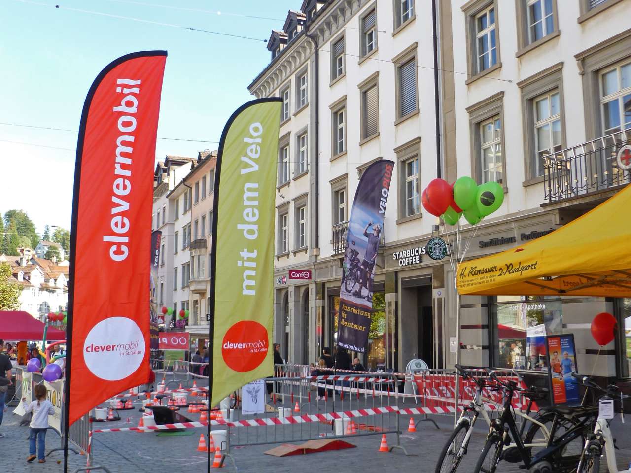 If you're on the road with clevermobil, you can get to your destination quickly, conveniently and in an environmentally friendly way. On Saturday, September 10, it's that time again. The Mobility Market 2022 will take place from 10 am to 5 pm in the city center of St.Gallen. Visitors will be able to discover the latest trends and offers for clever travel by bike, car, muscle power and public transport. And the "clevermobily Challenge" transforms the Marktgasse around the Vadian Monument into an interactive playing field with attractive prizes.