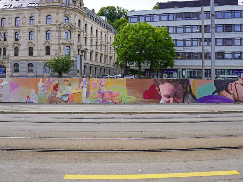 Since the end of June and until the end of October 2024, a temporary, 18-metre-long street art wall has adorned Bahnhofstrasse. As part of the "Kunst am Gleis" campaign, stores along Bahnhofstrasse are now also taking part and surprising passers-by with colorful window fronts and decorated shop windows by local artists.