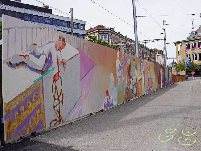The City Management Board sees street art as an opportunity to revitalize the city centre. That is why, in collaboration with the somewhere LAB agency, it brought together St.Gallen artist Lionel David and Basel artist Pollo 7. This resulted in the 18-metre-long street art wall.