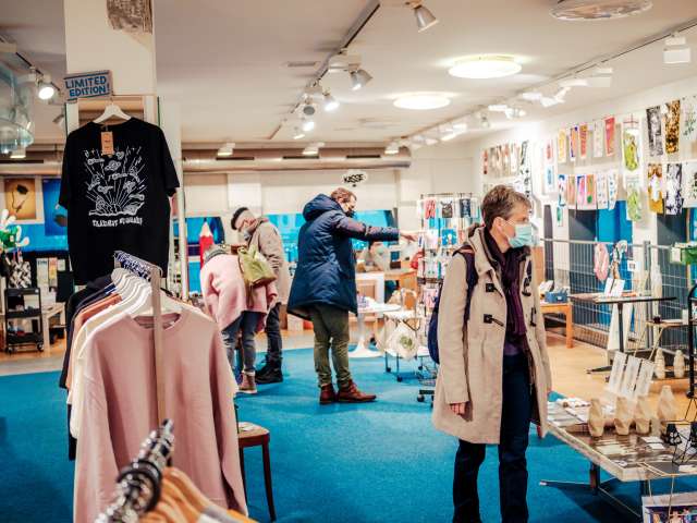 Until December 23, 2021, the "City Management Board" in partnership with the "Made in St Gallen -Initiative" as well as the art platform "supportyourlocalartist.ch" operates the "St.Galler Haus" as a pop-up store at Spisergasse 12. The creative concept has attracted over 10,000 visitors so far. The exhibiting companies and artists also look back on a successful month and are very satisfied with the results so far.