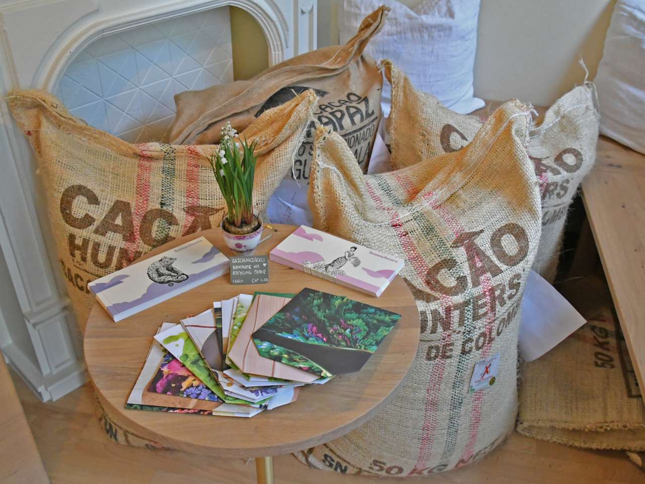 When you enter the "bonneheure", you are immediately hit by the delicious smell of chocolate. To the right of the entrance is a small bench, next to which Fairtrade cocoa bean bags from Guatemala, Colombia and Belize welcome you. Behind the counter, Mimi, whose real name is Miriam, is busily packing chocolates. "We do almost everything ourselves here. It starts with grinding the cocoa beans, to making the chocolate, to creating new products and packaging."
